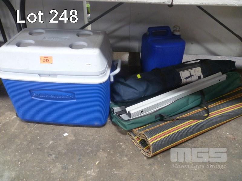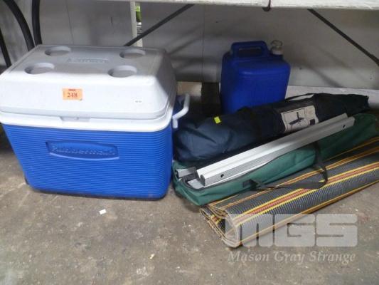 BLUE ESKY, 2 x CAMP BEDS, WATER CAN & WOVEN MAT
