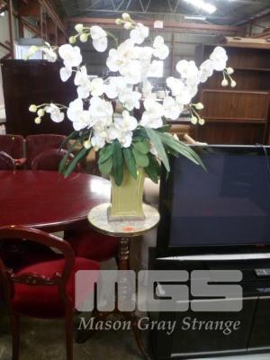 PEDESTAL TABLE WITH VASE AND FLOWERS
