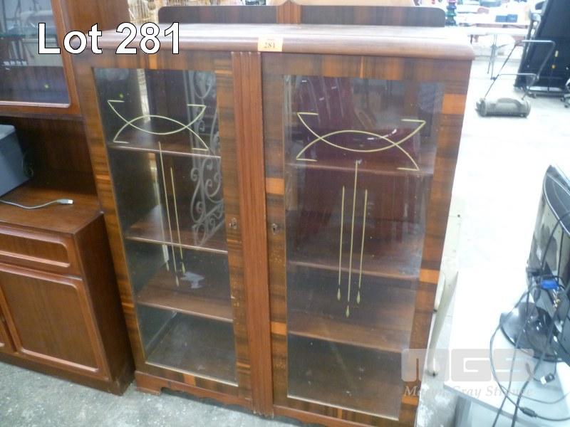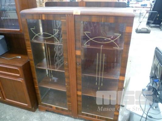 ART DECO ERA 2 DOOR CHINA DISPLAY CABINET WITH ETCHED GLASS DOORS, 4 SHELF INTERNAL SHELVING