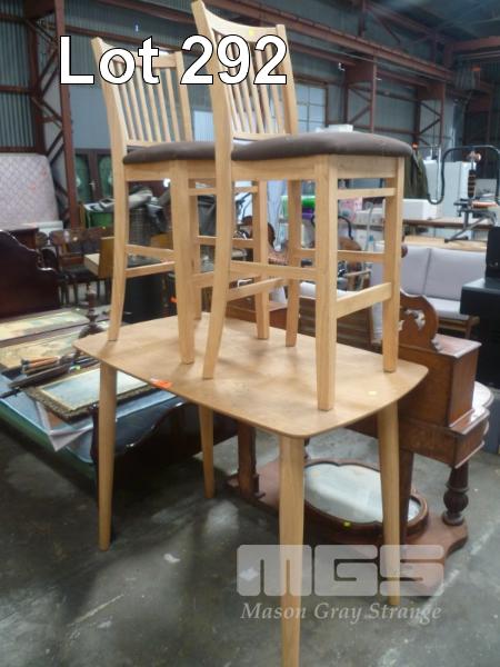 RECTANGULAR, TIMBER LAMINATE DINING TABLE TO SUIT BAR STOOL HEIGHT & PAIR MATCHING BAR STOOLS