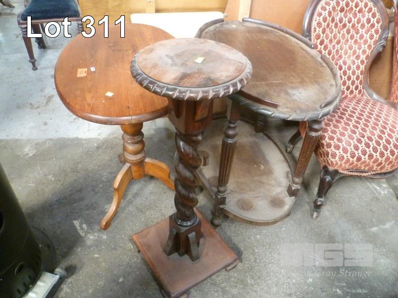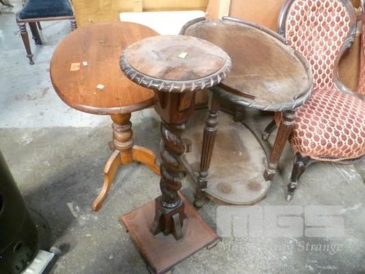 OVAL TIMBER TRAYMOBILE, TIMBER PEDESTAL, BARLEY TWIST & OVAL SINGLE PEDESTAL SIDE TABLE