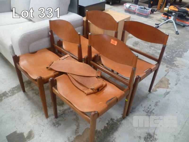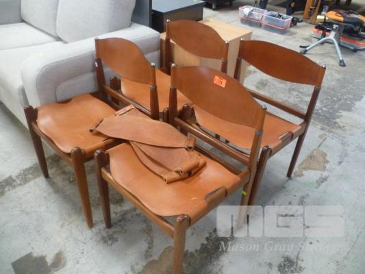 SET 4 MID CENTURY DINING CHAIRS, TIMBER FRAME, LEATHER UPHOLSTERED