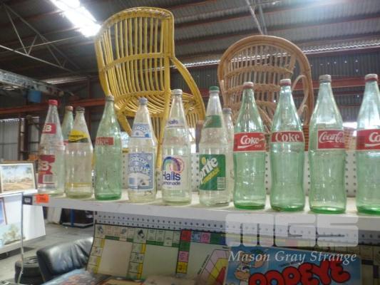 ASSORTED SOFT DRINK BOTTLES INC SCHWEPPES, COKE, ETC