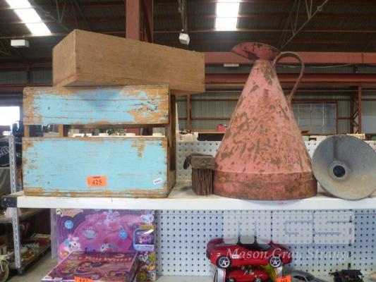 SCHWEPPES VINTAGE CRATE & ORIGINAL CAST METAL OIL CAN, 50cm (H)