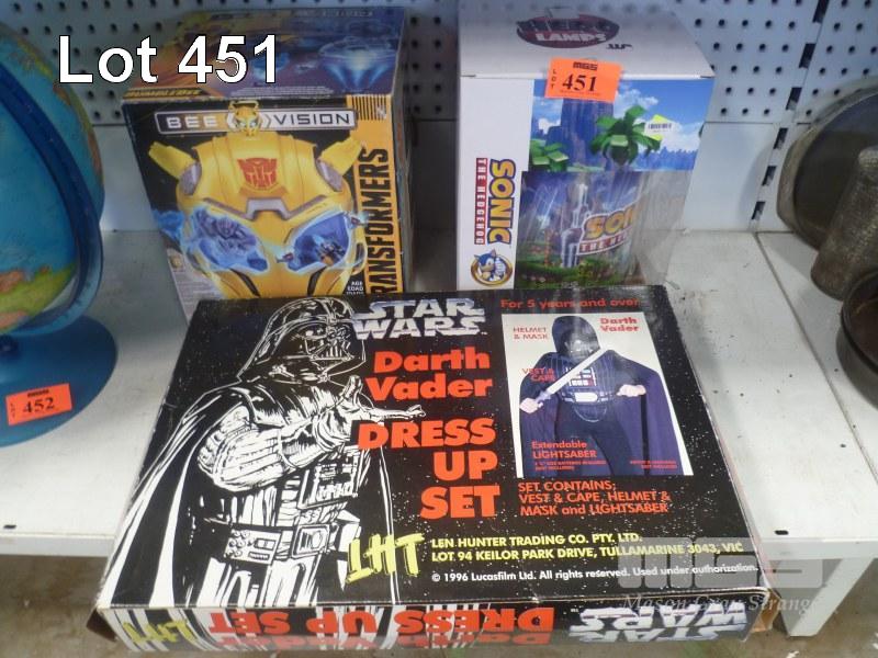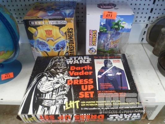 STAR WARS DARTH VADER DRESS UP SET, TRANSFORMERS BEE VISION & SONIC THE HEDGEHOG LAMP
