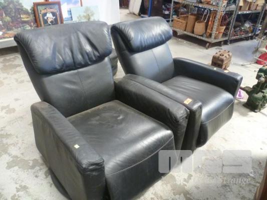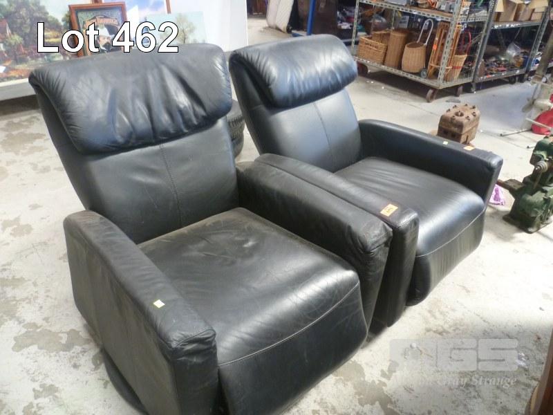 PAIR OF BLACK LEATHER SWIVEL RECLINERS (ALL FAULTS)