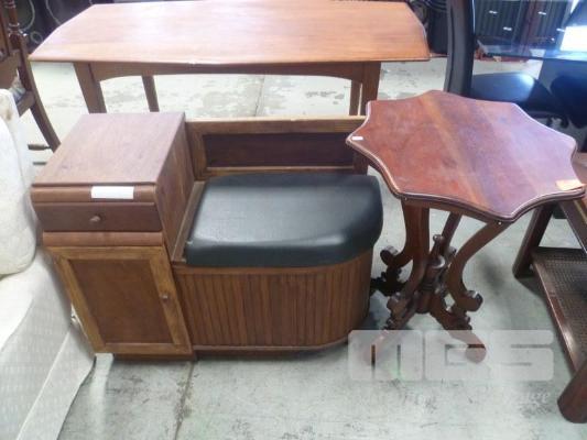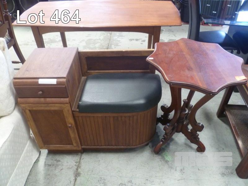 MAHOGANY OCCASIONAL STARBURST TABLE WITH ART DECO TELEPHONE TABLE