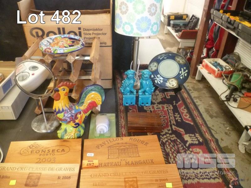 TIMBER PLAQUES, WINE RACK, ROLLEI SLIDE PROJECTOR, CERAMIC ORNAMENTS, ETC