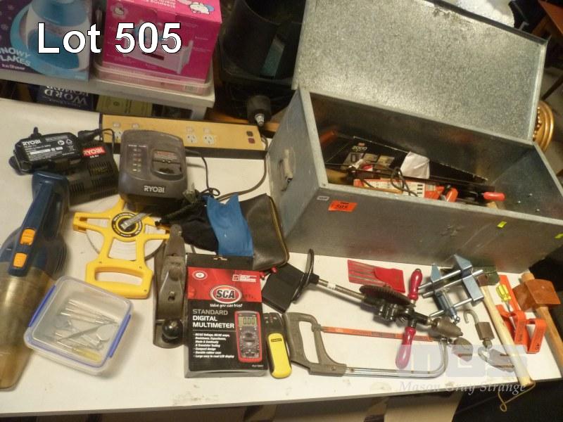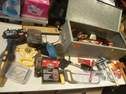 GALV TRUNK WITH ASSORTED HAND TOOLS, 1 x TABLE