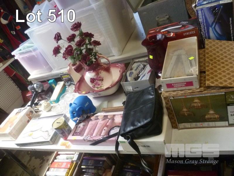 ASSORTED HOMEWARES, INC; JUG & BOWL SET, GIFT PACK, SHOES, HAIR CARE, ETC (1 X TABLE)