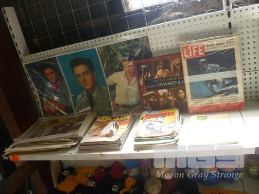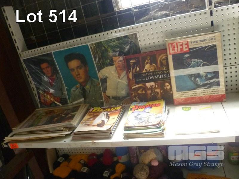 ELVIS POSTERS, A THUNDER OF DRUMS POSTERS, PHANTOM COMICS, KNIFE RELATED MAGAZINES, ETC