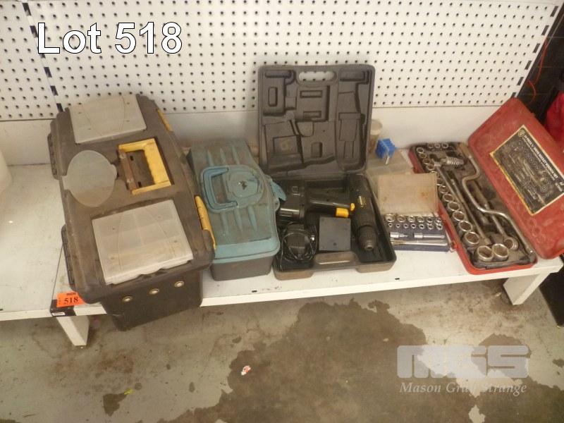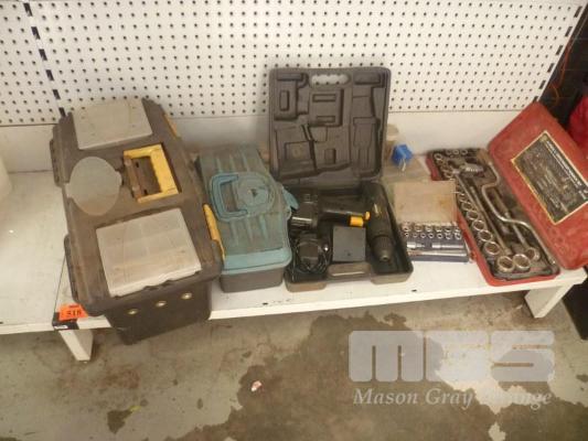 SOCKET SETS, CORDLESS DRILL, 2 x TOOL BOXES & CONTENTS