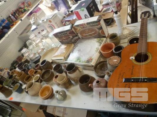 COLLECTION POTTERY & KITCHENWARE & A GUITAR, ALL FAULTS