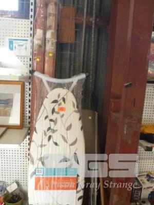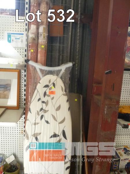 2 X BAMBOO BLINDS, LIGHT OAK, 2100 X 2100mm, DROP , CLOTHES DRYER, IRONING BOARD & 2 X LAUNDRY TROLLIES