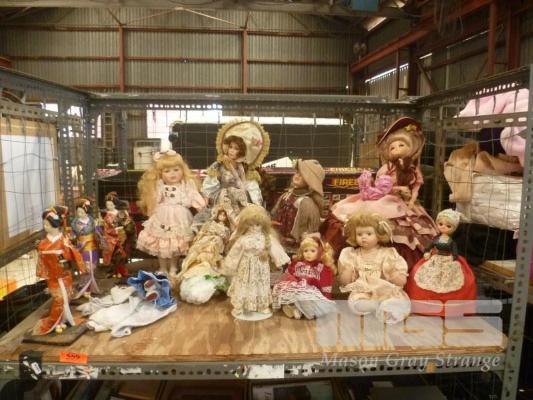 PORCELAIN DOLLS SOME ON STANDS