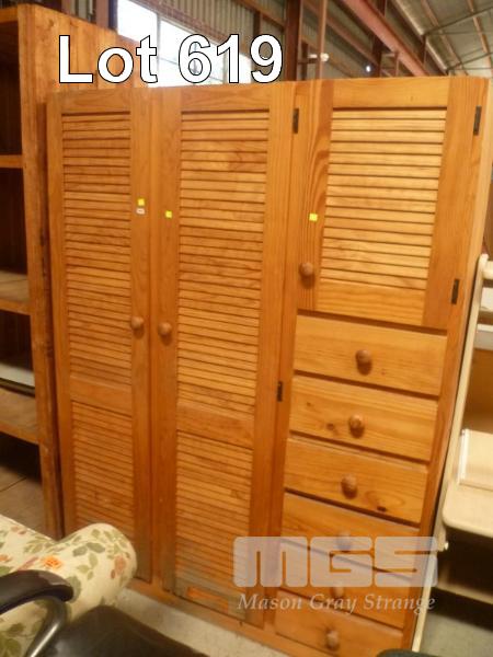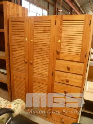 PINE WARDROBE, 3 LOUVRED DOORS, 6 DRAWER