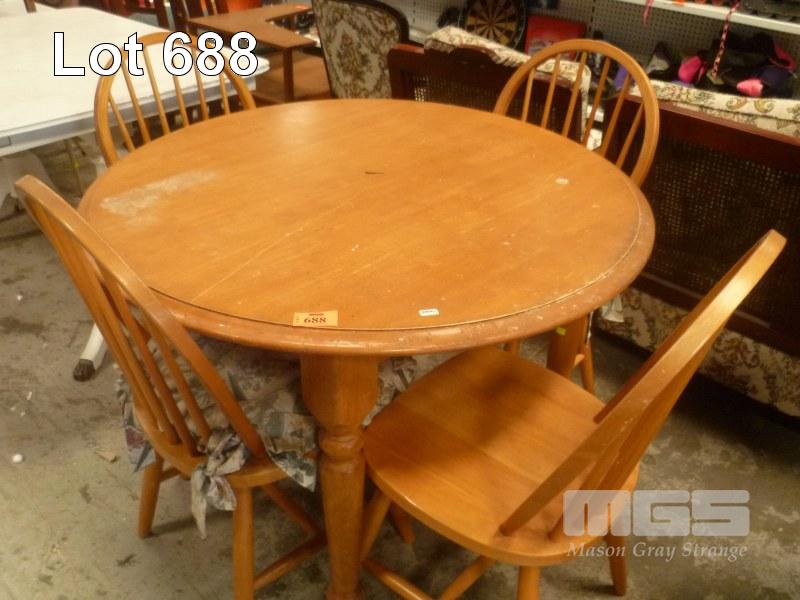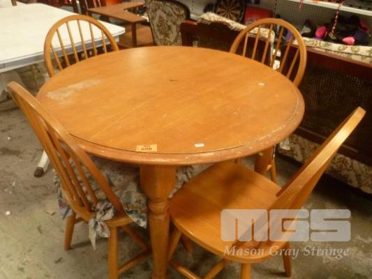 PINE 5 PIECE DINING SUITE INC ROUND TABLE & 4 x ARCHED DINING CHAIRS