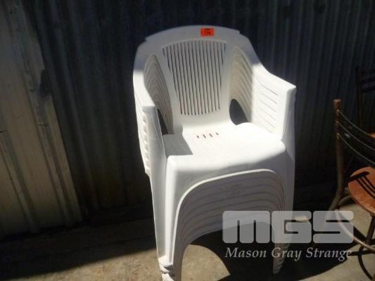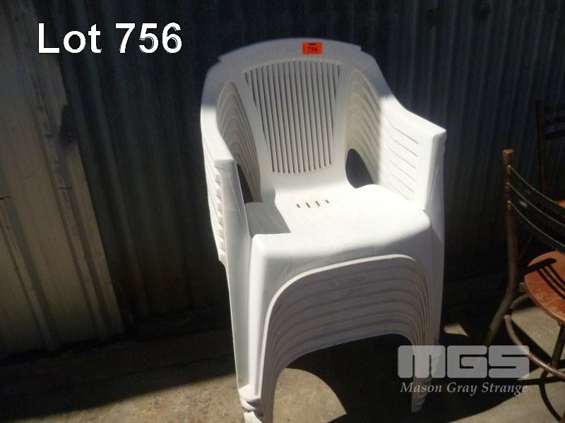 8 X WHITE STACKABLE OUTDOOR CHAIRS