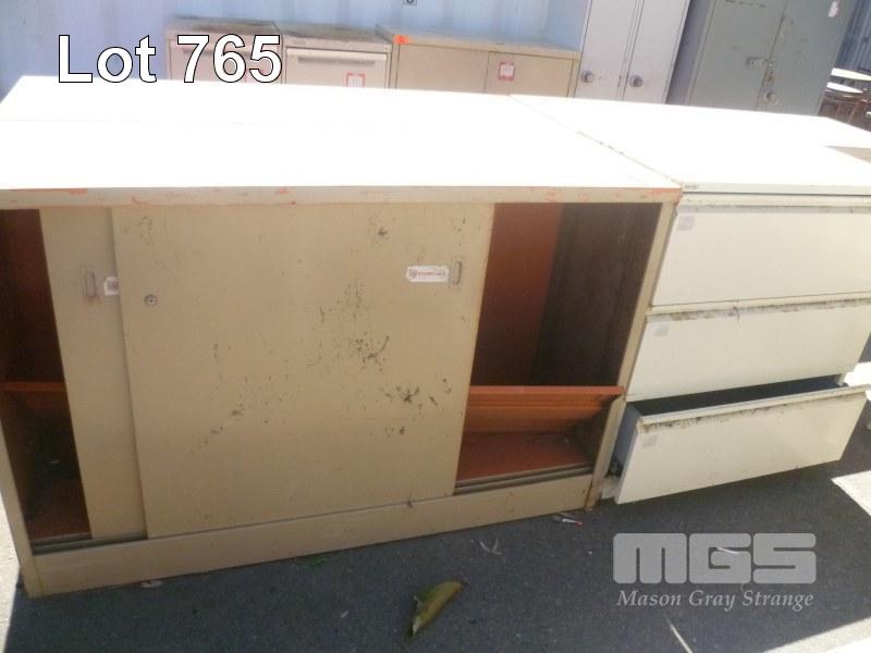 STEEL 2 SLIDING DOOR LOWLINE STATIONERY CABINET & LATERAL FILING CABINET