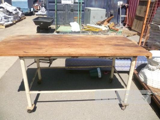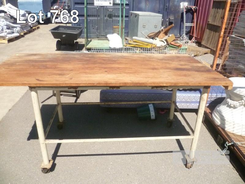 WORK BENCH, METAL FRAME, TIMBER TOP ON CASTORS, 196 x 86 x 94cm (H)