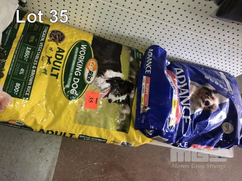 2 x BULK BAGS DOG DRIED FOOD, ADVANCED/COP RICE, 20kg