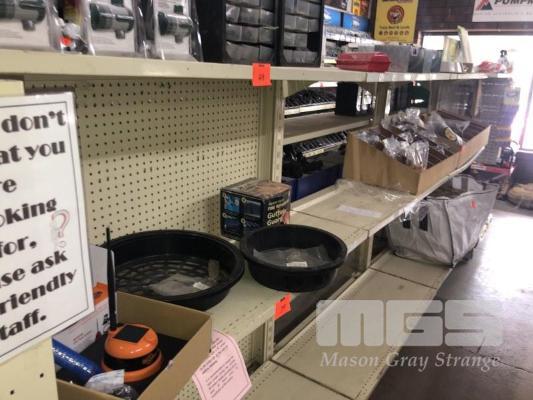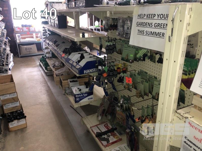 3 x DOUBLE SIDED BAY STEEL STOCK SHELVING & 1 END DISPLAY SHELF.