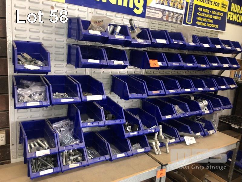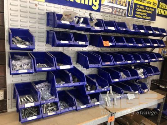 FENCING HARDWARE DISPLAY TO INC 4 x MAXIBIN RACK BAYS, 48 BULK BINS & ASSOCIATED GLAV FENCE & FASTENERS HARDWARE