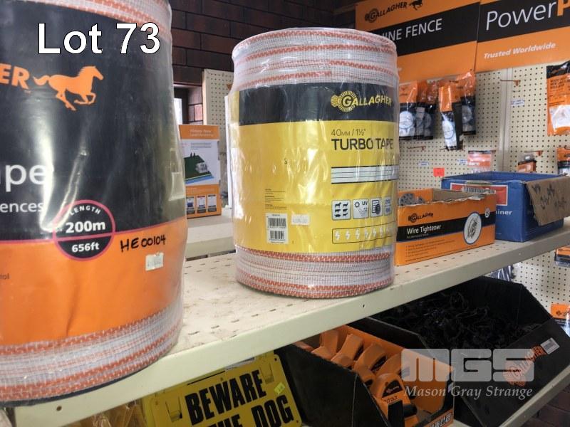 GALLAGHER FENCE EQUIPMENT INC SIGNS, TURBO TAPE, PATRIOT CUT OUT SWITCHES, FENCE CAPS, ETC