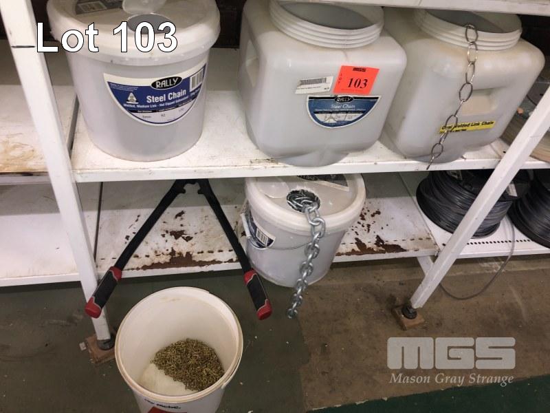 3 x BULK DRUMS CHAIN, 3 & 8mm GALV & OVAL WELDED LIGHT BRASS CHAIN AND CUTTERS,