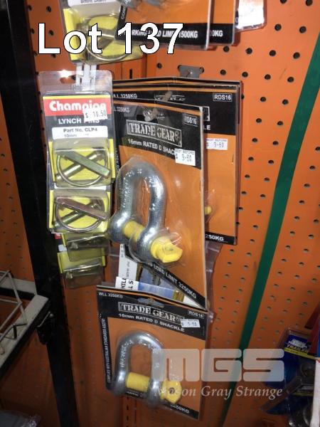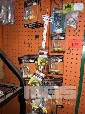 23 x ASSORTED PLATED YELLOW TAG D-SHACKLES, 1000-3200kg RATED, 4 x PLATED D-SHACKLES, 6 x BLUE TAG SHACKLES, 6-8-10mm LYNCH CLIPS 6 x PACKETS (2/PACK)