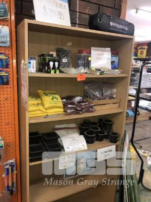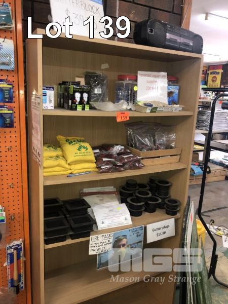 SHELF & CONTENTS INC 18 x BAGS FISH FOOD,240 VOLT LIGHT GLOBES, GUTTER STOPS, FIRE MASKS