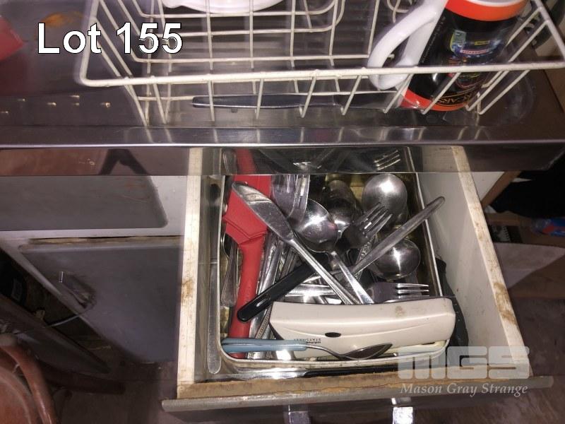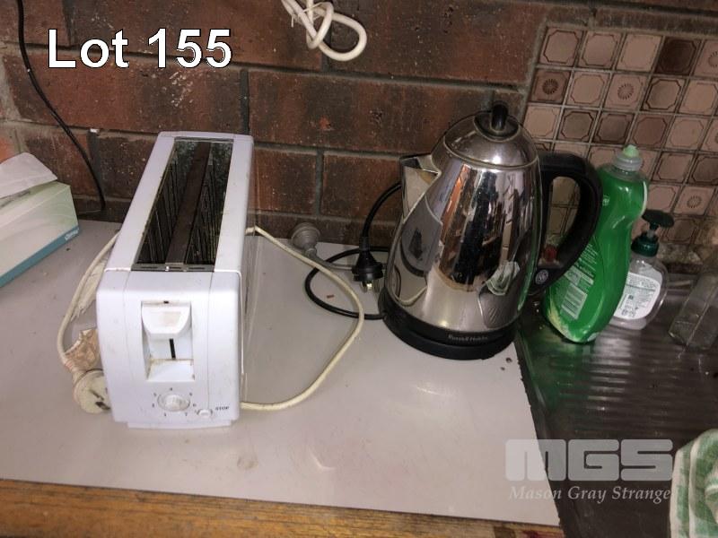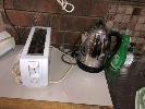 BAR FRIDGE, 122 LITRE, TOASTER, KETTLE, CUPS & CUTLERY