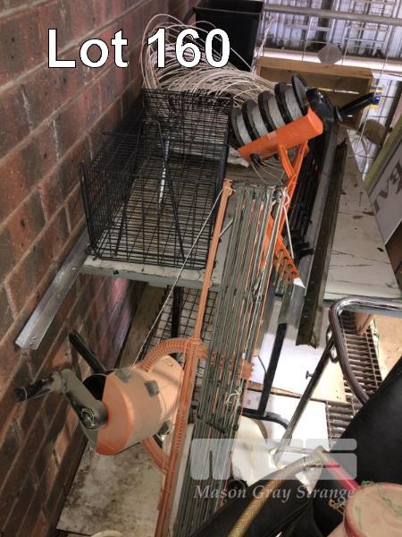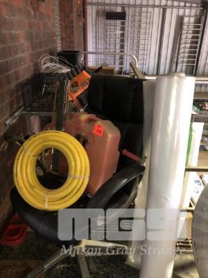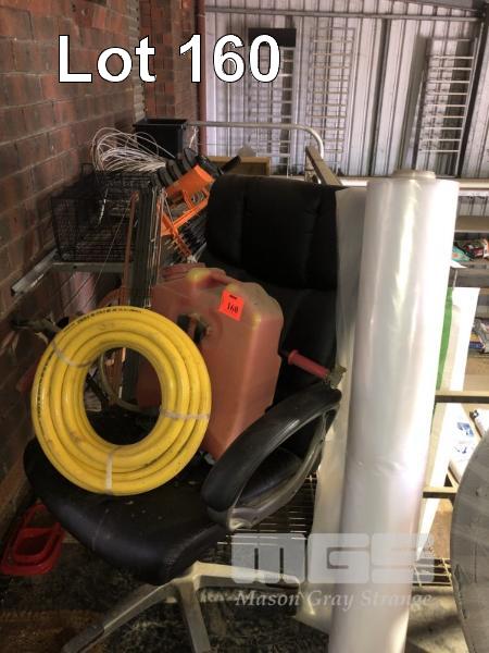 2 x ROLL OUT, QUICK ACTION FENCES, ANIMAL TRAP, OFFICE CAHIR, ROLL CLEAR PLASTIC, 1 x 19mm YELLOW FIRE HOSE, BACKPACK SPRAY & TABLE