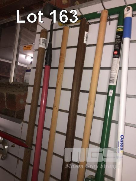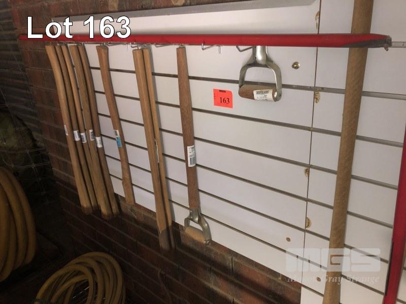 13 x NEW PICK AXE & SHOVEL HANDLES, 6' CROW BAR, SMALL HOLE AUGER & 2 x ROLLS YELLOW HOSE, 25 & 50mm