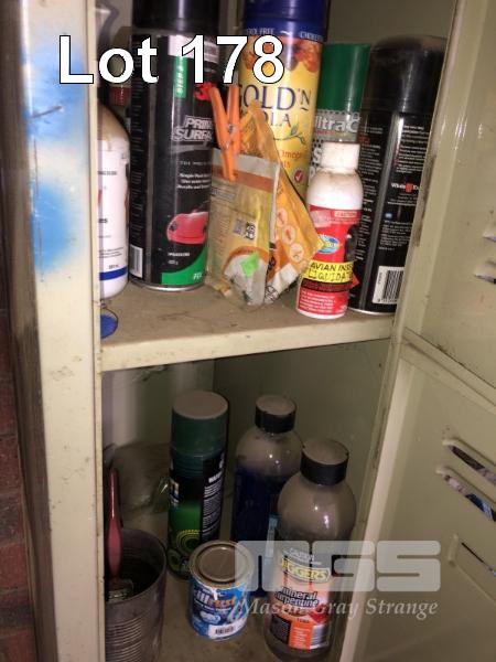 4 DOOR STEEL PIGEON HOLE LOCKER & CONTENTS VARIOUS PAINTS & THINNERS