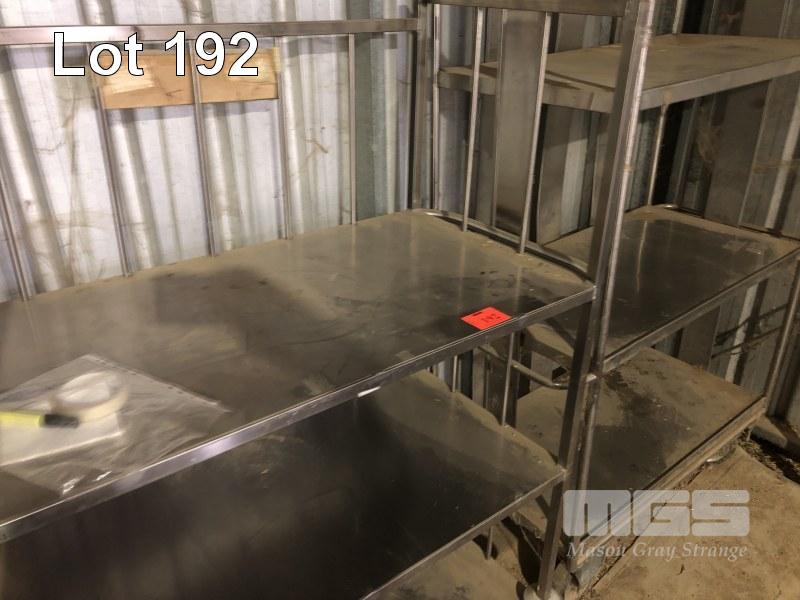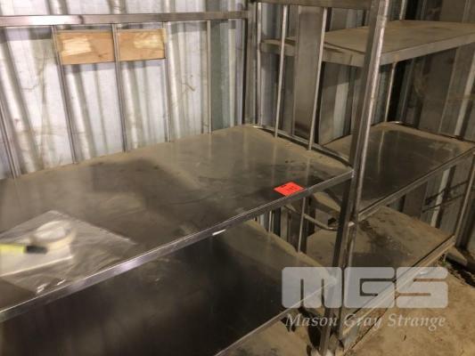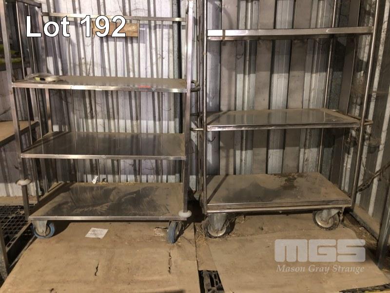 2 x STAINLESS STEEL MOBILE STOCK TROLLEYS, 1199 x 600 x 1500mm (H)