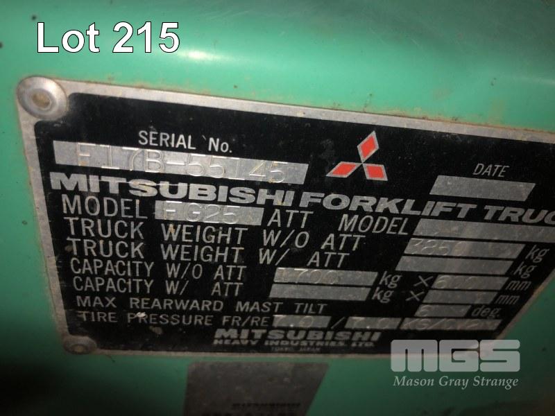 MITSUBISHI FORKLIFT MOD: FG25 LPG 3 STAGE CONTAINER MAST SIDE SHIFT 1,700kg CAPACITY HOURS: 13,284 RUNS, DRIVES & LIFTS OK