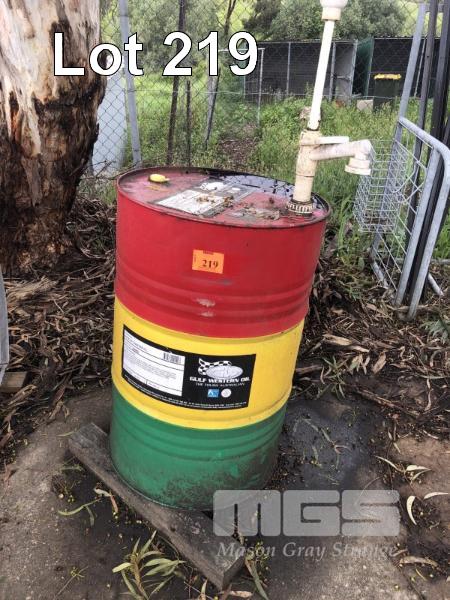 PART 205 LITRE DRUM PART FULL GULF WESTERN CHAIN OIL WITH HAND PUMP