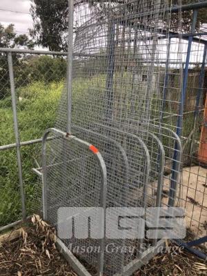 GALV STOCK RACK & CONTENTS, 4 BAY 2 x GALV MESH 25m SQUARE, 2000 x 1200mm 1 x GALV MESH, 75 x 50 SQUARE, 2400 x 1200mm & 3 x GALV MESH, 100 x 100 SQUARE, 2400 x 1200mm