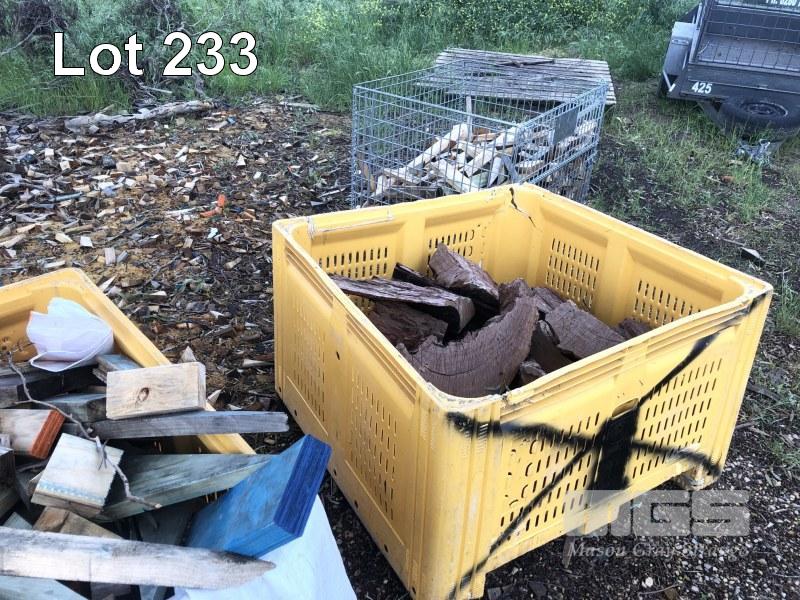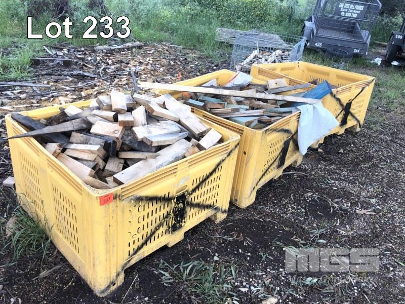 3 x NALLY BINS, PINE OFFCUTS & WIRE BASKET