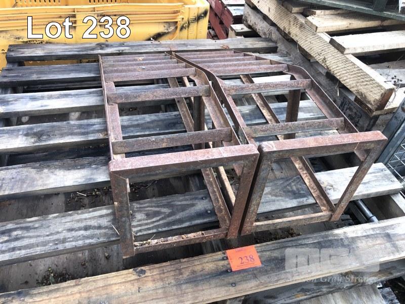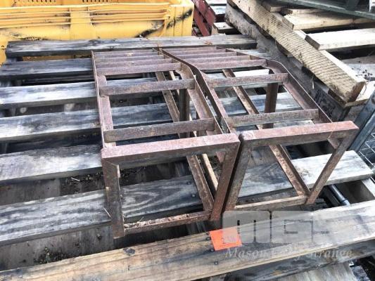 PAIR CAR RAMPS & 4 x PALLETS AND CAGE BEHIND .