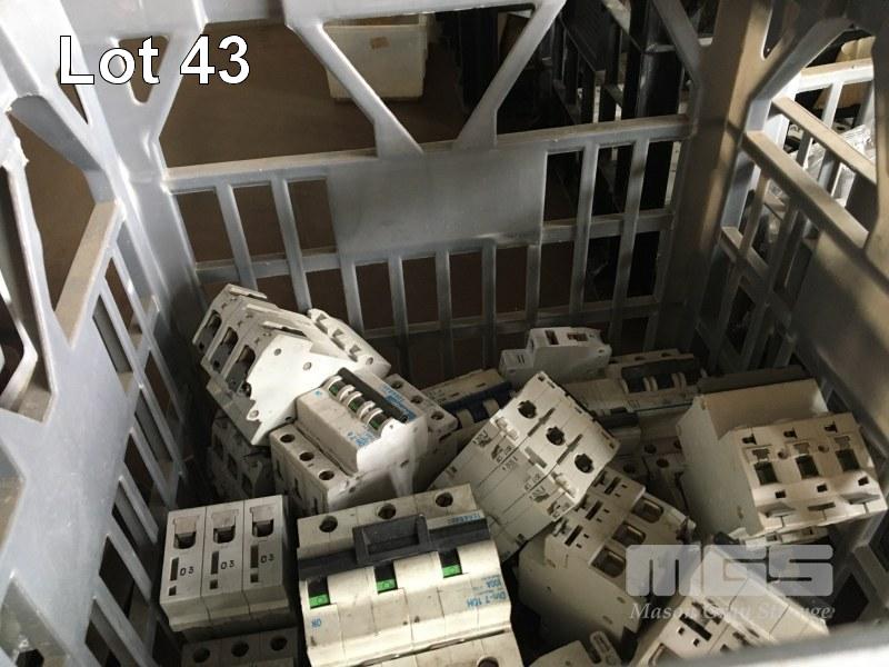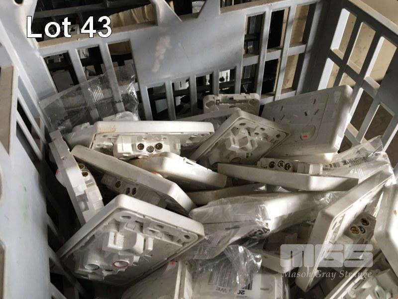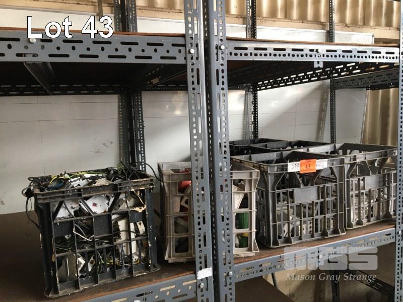 6 x CRATES GPO'S, CIRCUIT BREAKERS, PLUGS, ETC