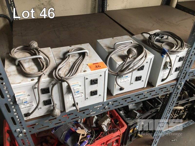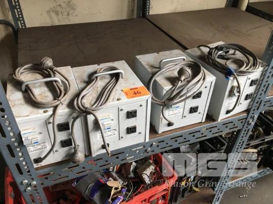 4 x SINGLE PHASE TRANSFORMERS, 240V-110V, TWIN OUTLET