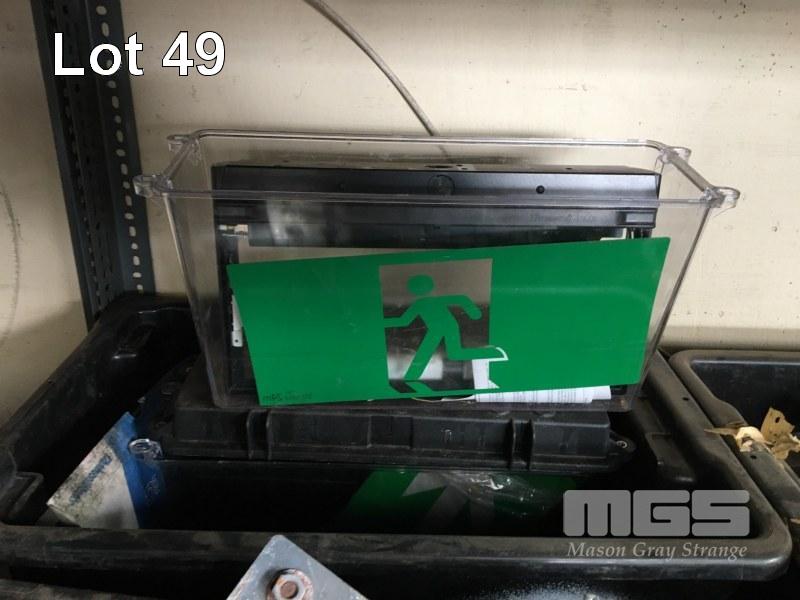 STEEL BRACKETS & EXIT SIGNS, ILLUMINATED, 6 x TUBS