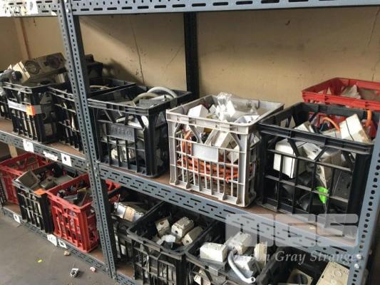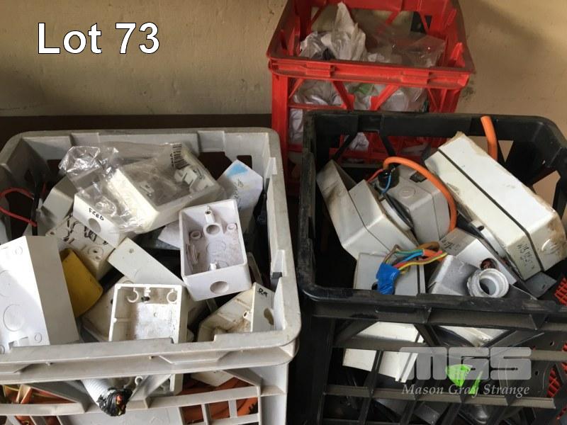 ELEC JUNCTION BOXES, GPO'S CIRCUIT BREAKERS, ETC, 8 x CRATES