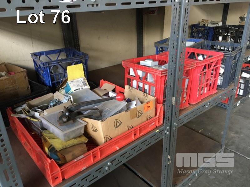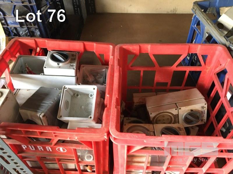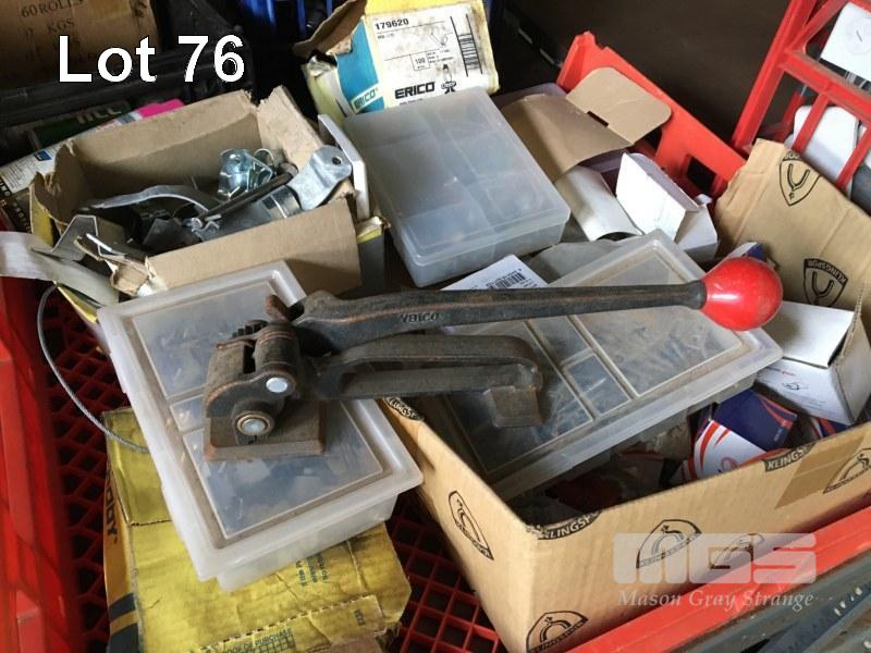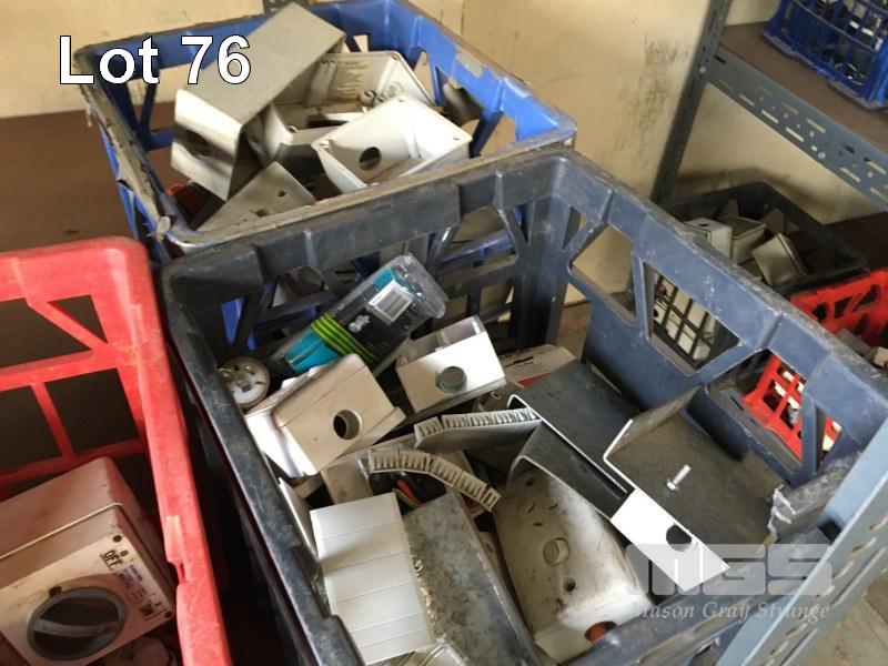 ELEC JUNCTION BOXES, GPO'S, STRAPPING TENSIONER, LUGS, NUTS, SCREWS, ETC, 7 x CRATES