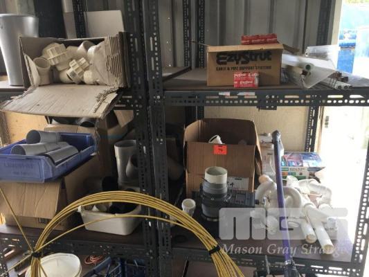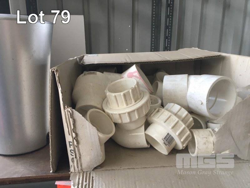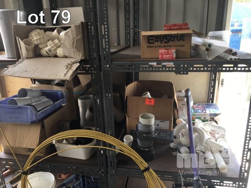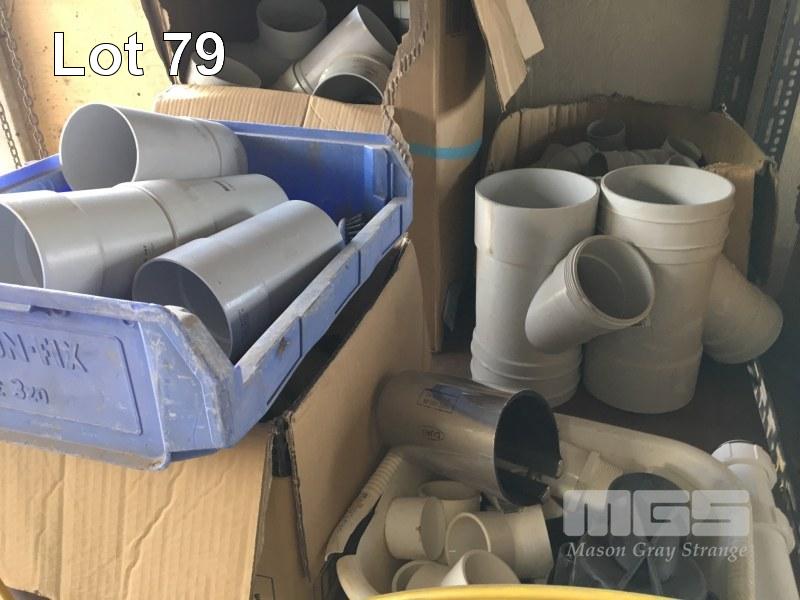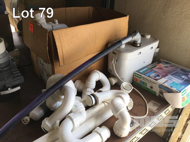PVC PLUMBING FITTINGS, DRAIN PUMP, ETC, 4 x SHELVES