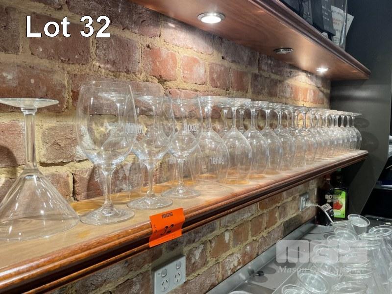 35 x WINE GLASSES, 14 x MARTINI GLASSES, 13 x TULIP GLASSES & DECANTER