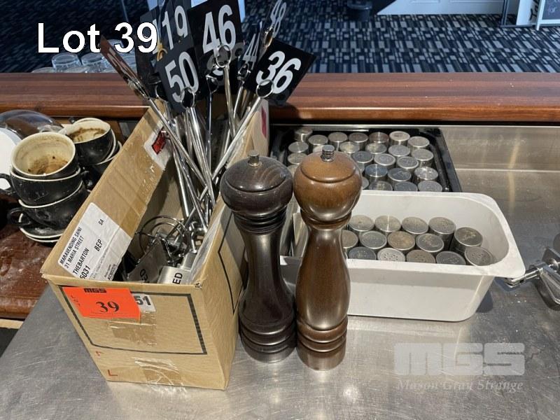 SALT & PEPPER SHAKERS, GRINDERS, TABLE NUMBERS & RESERVED SIGNS