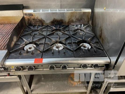 STOVE TOP, TRUE HEAT MOD: T90-6 6 BURNER GAS FIRED STAINLESS STEEL FRAMED